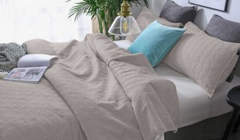 Изделие выполнено из двухслойного жаккарда. Этот качественный материал соткан из двух слоев тонкой хлопковой ткани с жаккардовым рисунком в светло-кофейном цвете. Ткань мягкая, эластичная, приятная на ощупь, а вкупе с натуральным хлопковым наполнителем одеяло-покрывало Organic Cotton приобретает высокую воздухопроницаемость и терморегуляцию, что особенно важно в летний период.